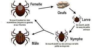 Les tiques peuvent mordre à chaque stade de leur développement : larve, nymphe et adulte. Chez les tiques adultes, seules les femelles mordent.
