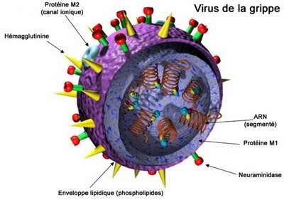 Pour le virus A, on distingue différents sous-types liés à la nature de protéines présentes à la surface du virus : hémaglutinine Ha (H1 à H16) et neuraminidase NA (N1 à N9). Actuellement, chez l’homme circulent H1N1 et H3N2.