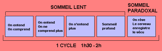 Le sommeil comporte plusieurs cycles qui se répètent plusieurs fois dans la nuit. Un cycle comporte plusieurs phases et est précédé d’une période d’éveil calme, plus ou moins longue, préparant l’endormissement.